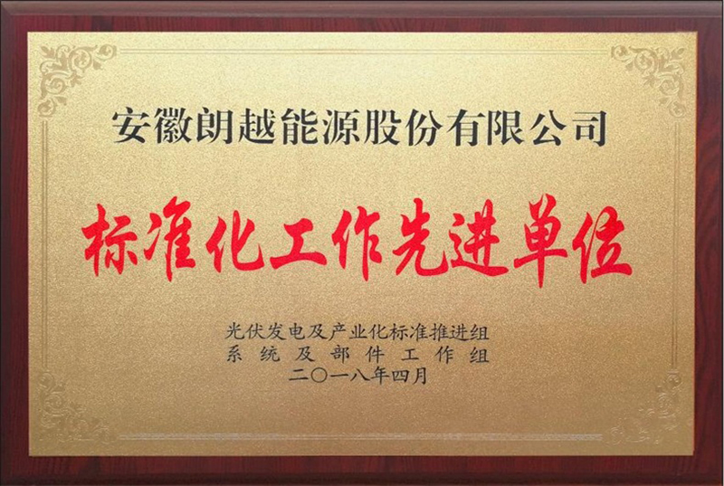 2018年4月13日,朗越能源榮獲光伏發(fā)電及產(chǎn)業(yè)化”標(biāo)準(zhǔn)化工作先進(jìn)單位”稱號(hào)。
