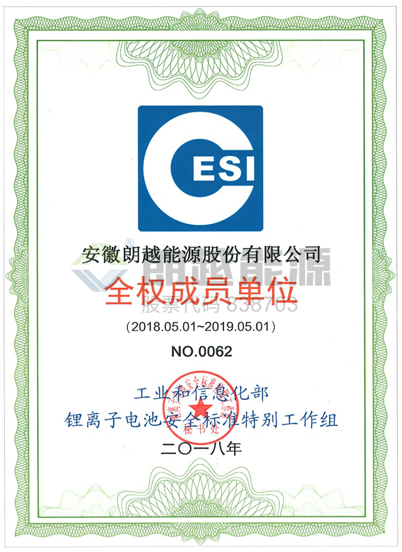 2018年5月1日,朗越能源成為工業(yè)和信息化部鋰離子電池安全標(biāo)準(zhǔn)特別工作組全權(quán)成員單位。