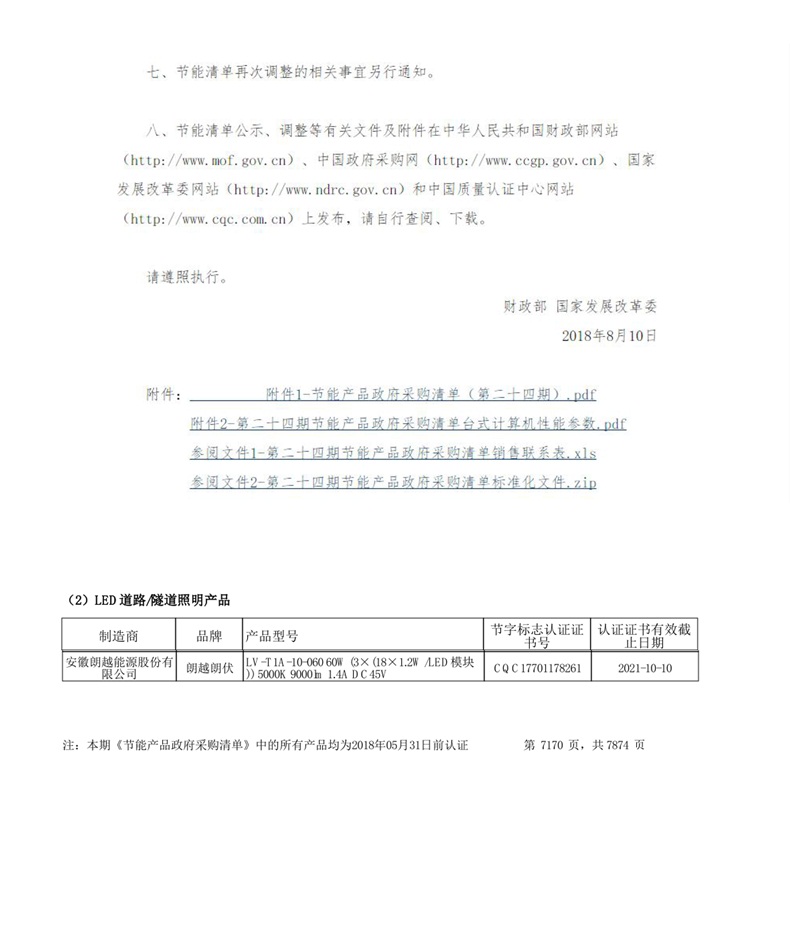 2018年8月10日,朗越能源產(chǎn)品入選財(cái)政部國(guó)家發(fā)展改革委節(jié)能產(chǎn)品政府采購(gòu)清單(第二十四期),詳見財(cái)庫(kù)【2018】73號(hào)文件。