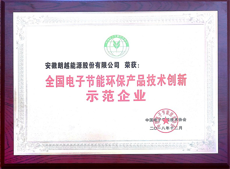 2018年12月27日,朗越能源榮獲2018”全國(guó)電子節(jié)能環(huán)保產(chǎn)品技術(shù)創(chuàng)新示范企業(yè)”稱號(hào)。