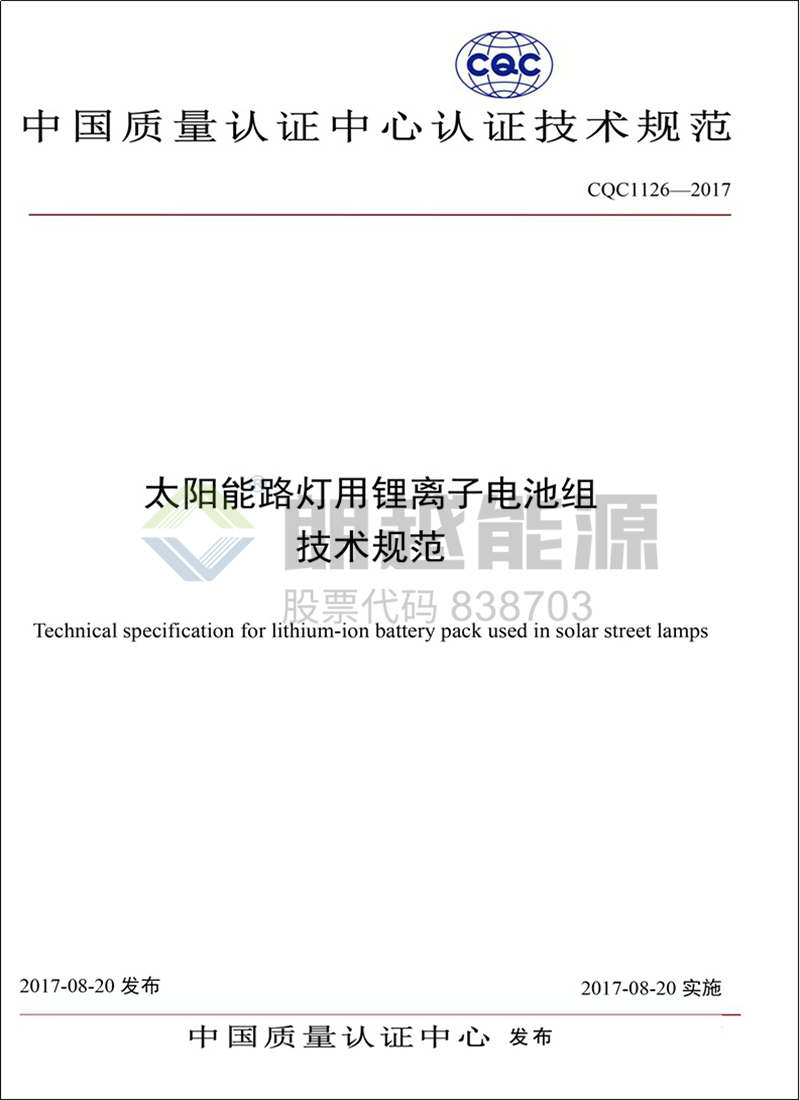 沒(méi)有規(guī)矩,不成方圓。照明事業(yè)的不斷發(fā)展對(duì)標(biāo)準(zhǔn)化工作提出了更高的要求,而標(biāo)準(zhǔn)化工作的不斷完善則有力的推動(dòng)著照明事業(yè)走向更高水平和質(zhì)量的發(fā)展方向。標(biāo)準(zhǔn)化工作作為產(chǎn)業(yè)發(fā)展的支撐,有著極為重要的意義。標(biāo)準(zhǔn)化工作作為產(chǎn)業(yè)發(fā)展的支撐,有著極為重要的意義。朗越能源積極參與起草編制了GB/T 33766-2017《獨(dú)立太陽(yáng)能光伏電源系統(tǒng)技術(shù)要求》、CQC1126-2017《太陽(yáng)能路燈用鋰離子電池組技術(shù)規(guī)范》、CQC11-464117-2017《太陽(yáng)能路燈用鋰離子電池組安全認(rèn)證規(guī)則》、GB/T 35264-2017《太陽(yáng)能草坪燈系統(tǒng)技術(shù)規(guī)范》、20162475-T-339《鋰離子電池組安全設(shè)計(jì)指南》等各項(xiàng)行業(yè)及技術(shù)標(biāo)準(zhǔn)。