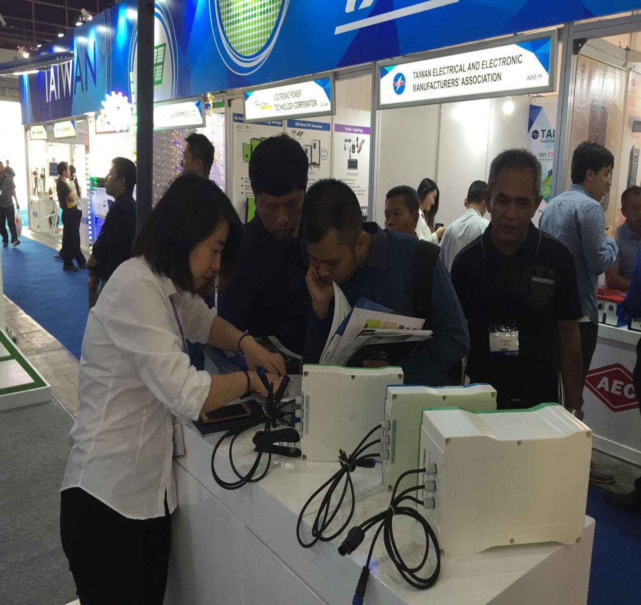 2017年5月印尼國際照明展,外商向我公司外貿(mào)部經(jīng)理龔巧云詳細詢問鋰電智能儲控系統(tǒng)產(chǎn)品。