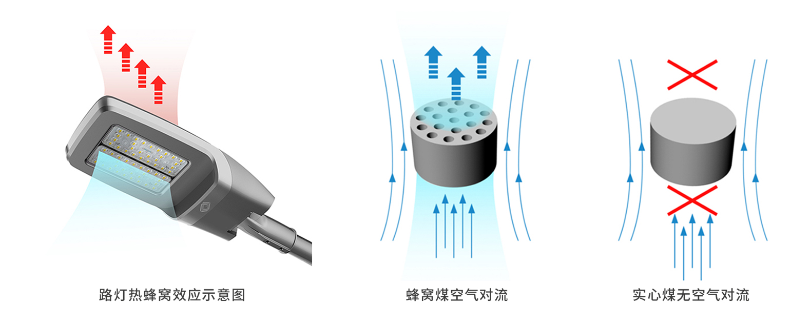 模仿蜂窩煤的燃燒原理,實(shí)心的煤由于中心接觸不到空氣,燃燒慢且不充分,在中心做成各種通孔后,由于空氣的對(duì)流,燃燒迅速,這就是燃燒的熱蜂窩效應(yīng)。同理將原本整塊的散熱器打散成各個(gè)模組后,利用熱蜂窩效應(yīng),使空氣對(duì)流起來,充分穿越模組之間的空隙,迅速帶走熱量,可以降低20℃左右溫度。